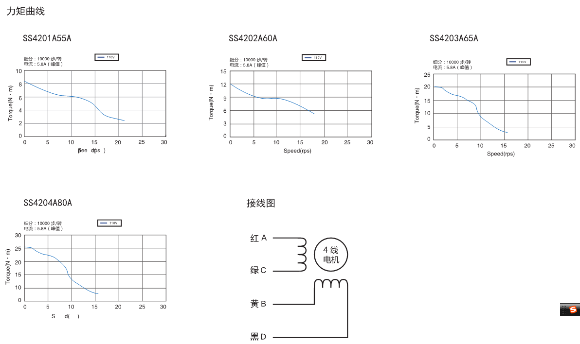 標準混合式110mm步進電機SS4201A55A選型參數表: